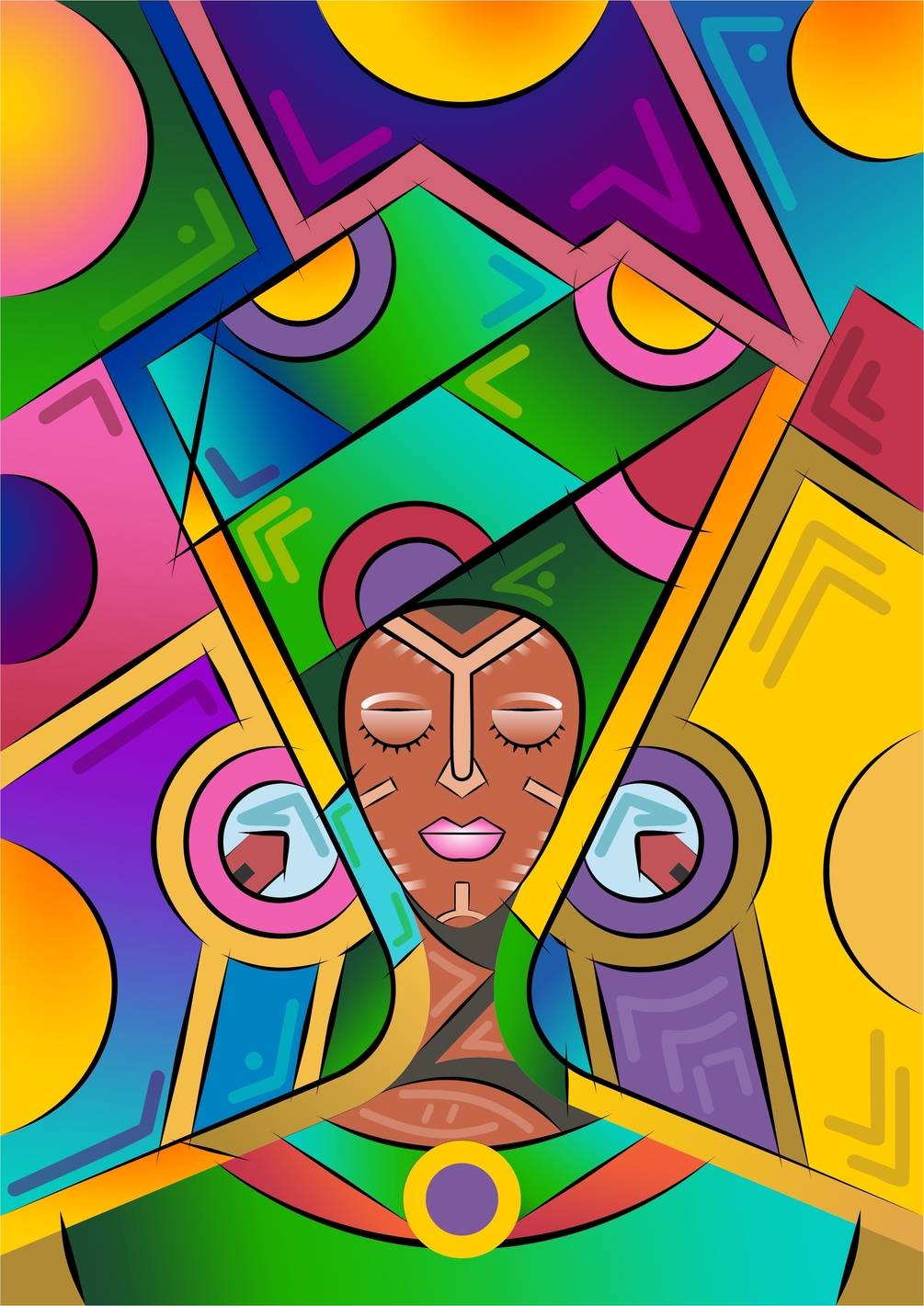 The Bride (Digital Artwork) portrays the beauty and the vibrant nature of an African bride with the touch of green symbolizing fertility and purple for royalty. The major thing that runs in the mind of an African Bride is her new home as clearly depicted in the piece.
